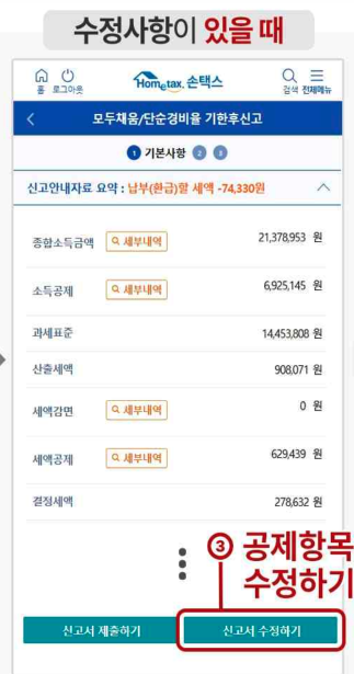 - 소득금액과 공제내역을 확인하여 수정할 수 있고 공제항목을 추가