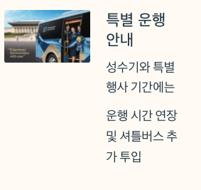 "관람 30분 전에는 도착해서 셔틀을 이용하시는 걸 추천드립니다."