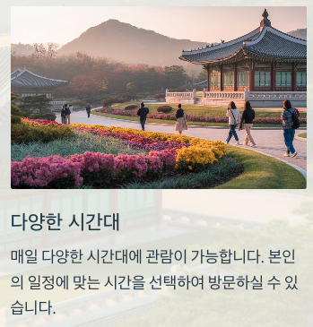 관람은 무료이며, 사전 예약 필수입니다. 매일 다양한 시간대에 관람이 가능하니 미리 체크하세요.