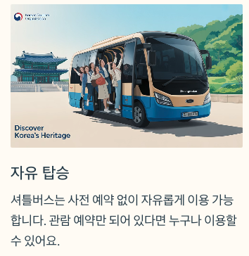 | 경복궁역 ↔ 청와대 입구 | 모든 관람객 | 무료 |