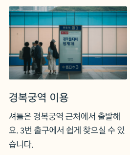 셔틀은 경복궁역 근처에서 출발해요.